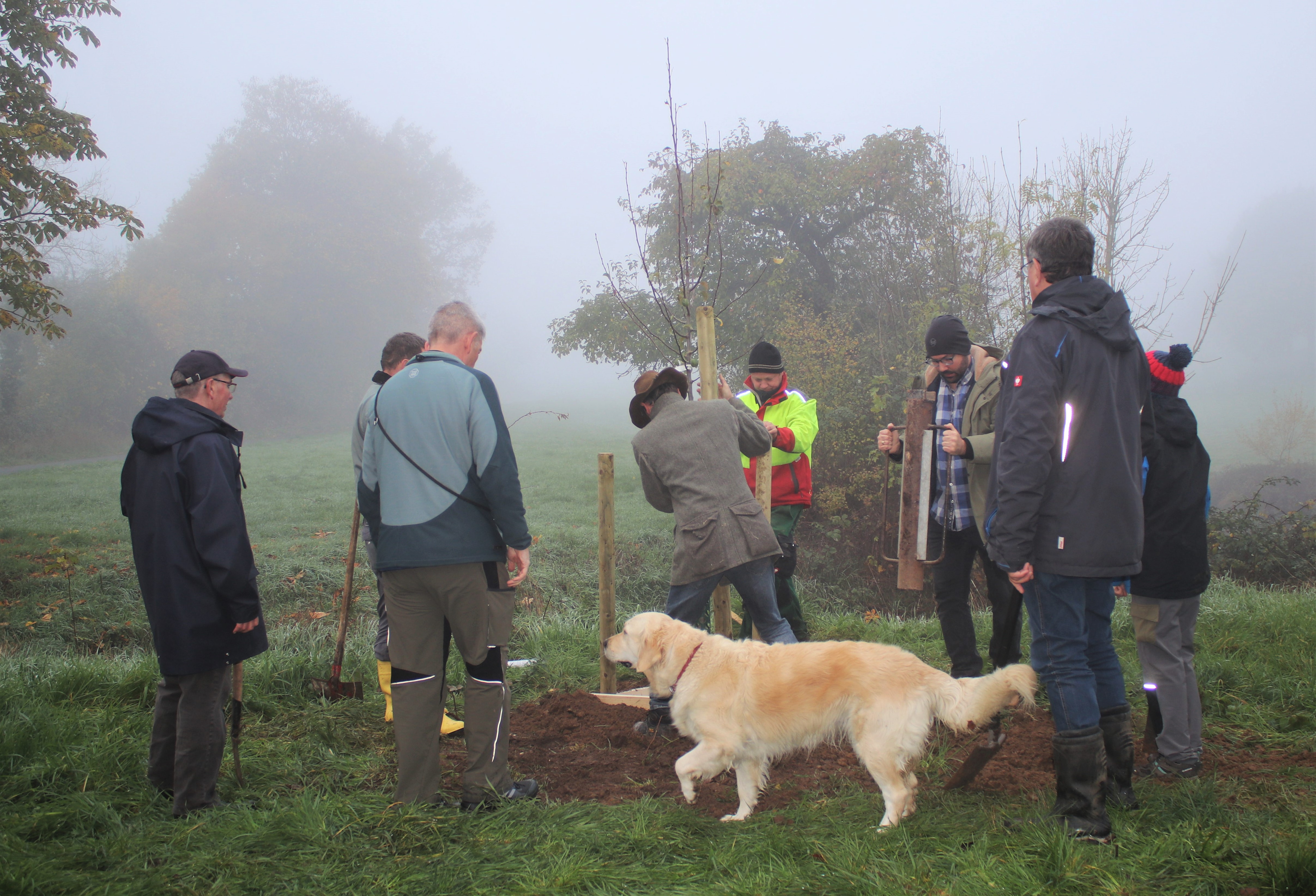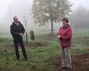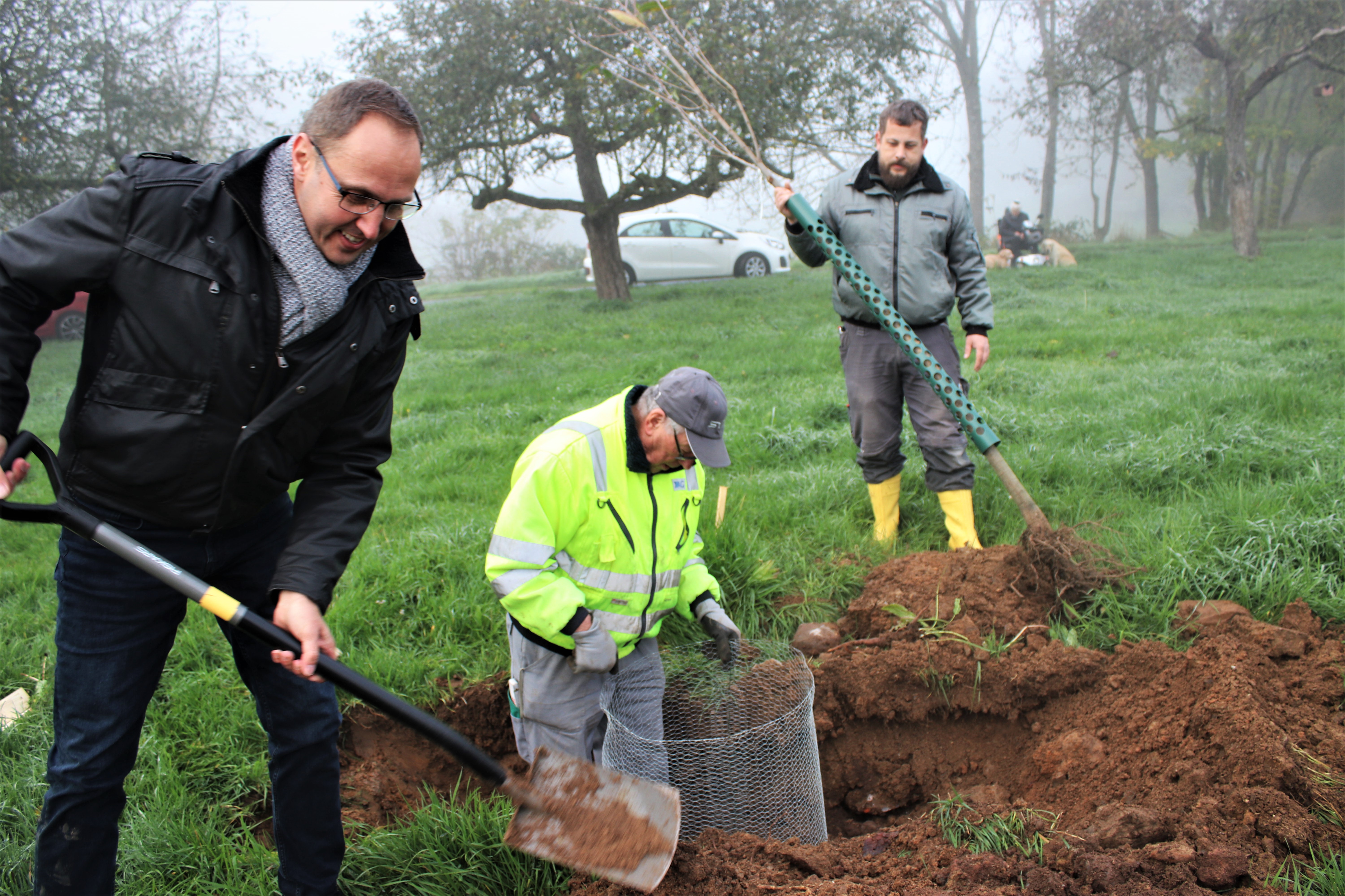 Das Interesse der Bevölkerung an der Aktion ist groß und so kamen mehr als 50 Einwohnerinnen und Einwohner aus Geiss-Nidda am Samstag, 12. November 2022 zusammen, um die ersten Bäume zu pflanzen. Der Bürgermeister Thorsten Eberhard sprach der Natur- und Vogelschutzgruppe seinen Glückwunsch zum 50.jährigen Jubiläum und seine Anerkennung für die geleistete Naturschutzarbeit aus. Anschließend legte er zusammen mit weiteren zwanzig tatkräftigen Männer Hand an, um die jungen Bäume in die Erde zu bringen.